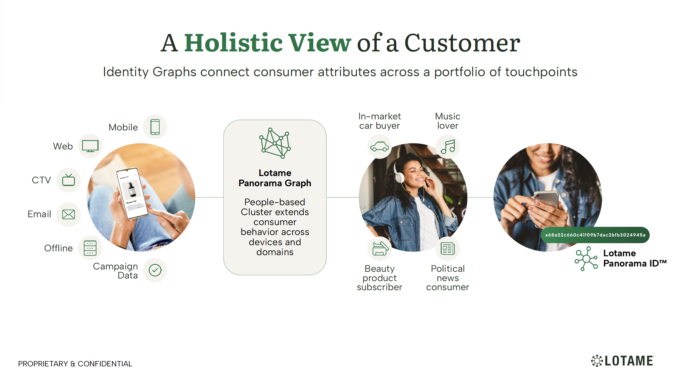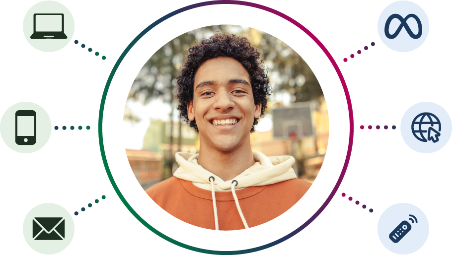 This visual demonstrates our identity resolution capabilities, matching users across identifiers, channels, and devices.