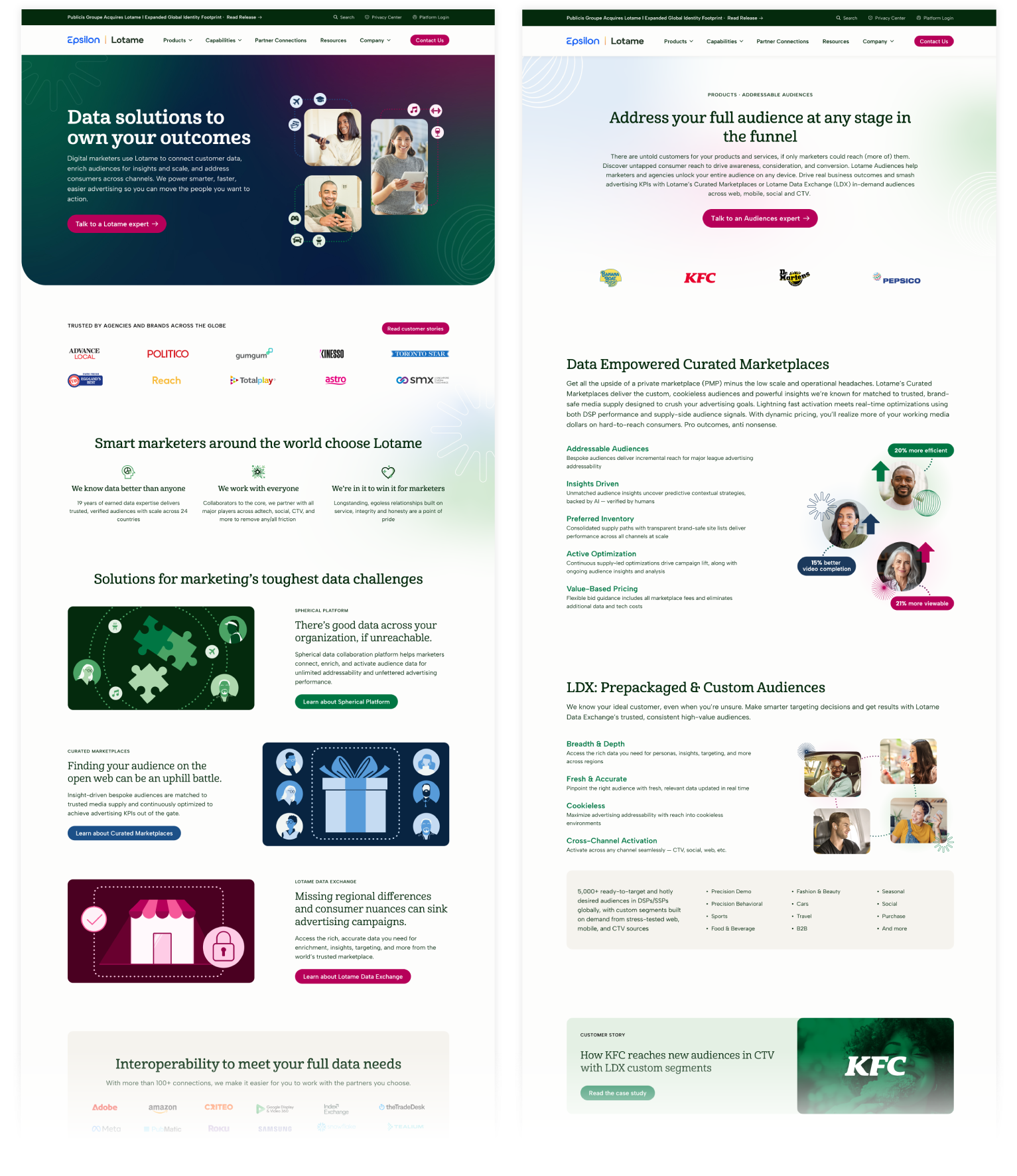 Lotame’s platform is very technical, and screenshots are not the most appealing way to demonstrate the platform’s capabilities. I created stylized mockups of the key insights our platform delivers to catch non-technical users’ attention on our website.